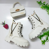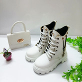 من بهت پیشنهاد میدم الان که ارزونه بخری🥰❤ بوت دخترونه دو رنگ سفید و مشکی جنس عالیی تمام چرم بغل زیپ بلندی ۱۸ سانت